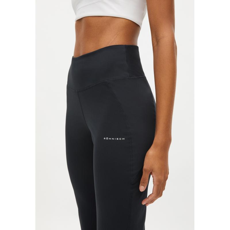 Elastisk bukse laget i en blanding av resirkulert polyester og elastan. Den har et pustende og fukttransporterende stoff som holder deg avkjølt og tørr til enhver tid. Den har justerbar snøring på innsiden av midjen og er dekorert med Röhnisch logotekst på benet. Flattering high waist pants har høyt liv og utsvingte ben med innersøm på 78 cm. Gjør antrekket komplett med Flattering sports-BH slik at du er klar for en god treningsøkt – eller bruk Flattering som et komfortabelt alternativ i hverdagsgarderoben.