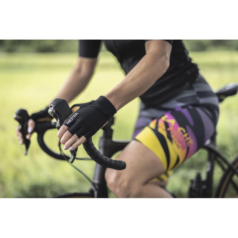 sykkelhanske med halvfinger for landeveier og terrengsykkel i varme forhold